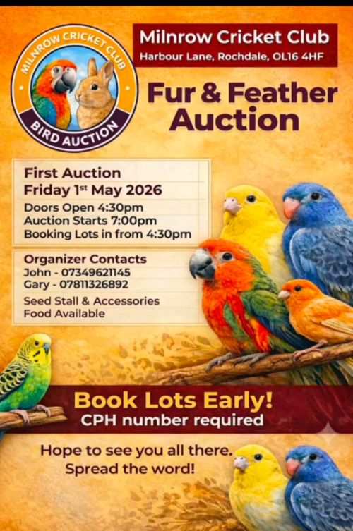 Milnrow cricket club bird Auction on Friday 1st May
