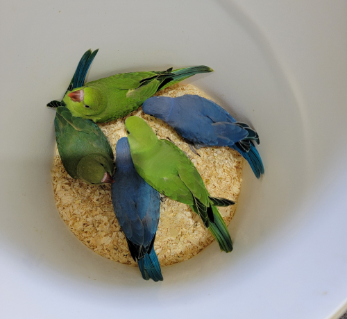 The violets and greens are ready to rehome and the pallids will be in couple weeks.