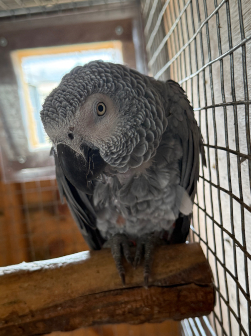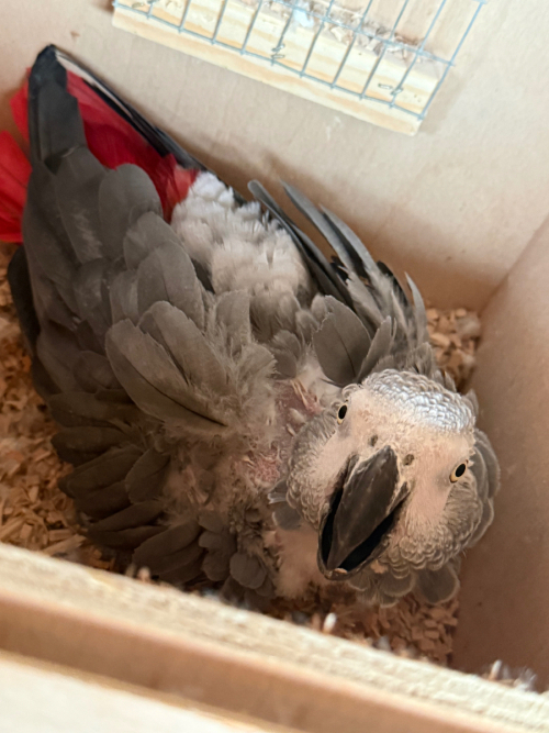 i have owned  this pair of greys for just over a year , they were proven with previous owner but not with me , they do feed each other . the hen is 2008 closed rung with cites, she was already plucked on the chest when i purchased them but it is growing back( she says hello and is friendly , the cock is plucked bald on his chest and has a sexing ring ( he is a growler) but due to the inaccuracy of his cites i am giving him away free with the hen .