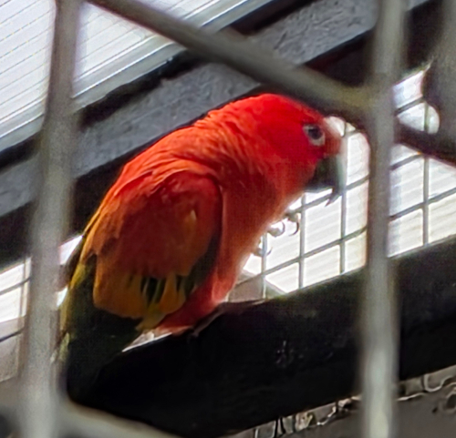 Dark red sun conures 2 dark red males under 2 years old one dark red female and 1 Ressive pied